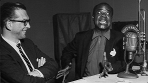 Willis Conover and Louis Armstrong in a Voice of America studio,