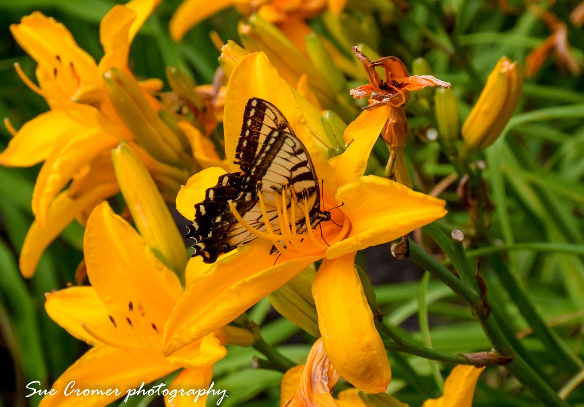 A butterfly in the lilies at Meadowlark Botanical Gardens in