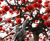 Lanterns hung on a tree ahead of the Chinese Lunar New Year