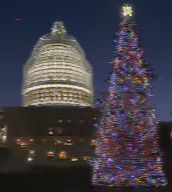 Christmas tree on the grounds of the U.S. Capitol, whose dome is