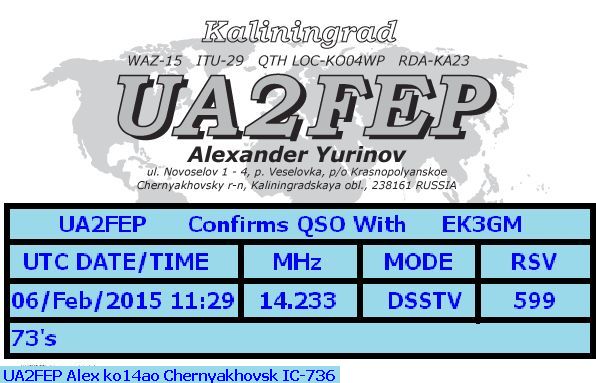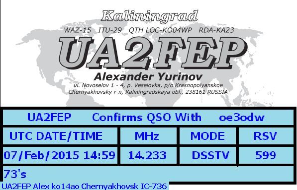 Here are some pics of UA2FEP [Александр Юринов, Alexander P. Yurinov, Chernyakhovsk, 238161, Pos. Veselovka Ul. Novoselov 1-4, Kaliningrad / until 1946: Кёнигсберг / Königsberg ]